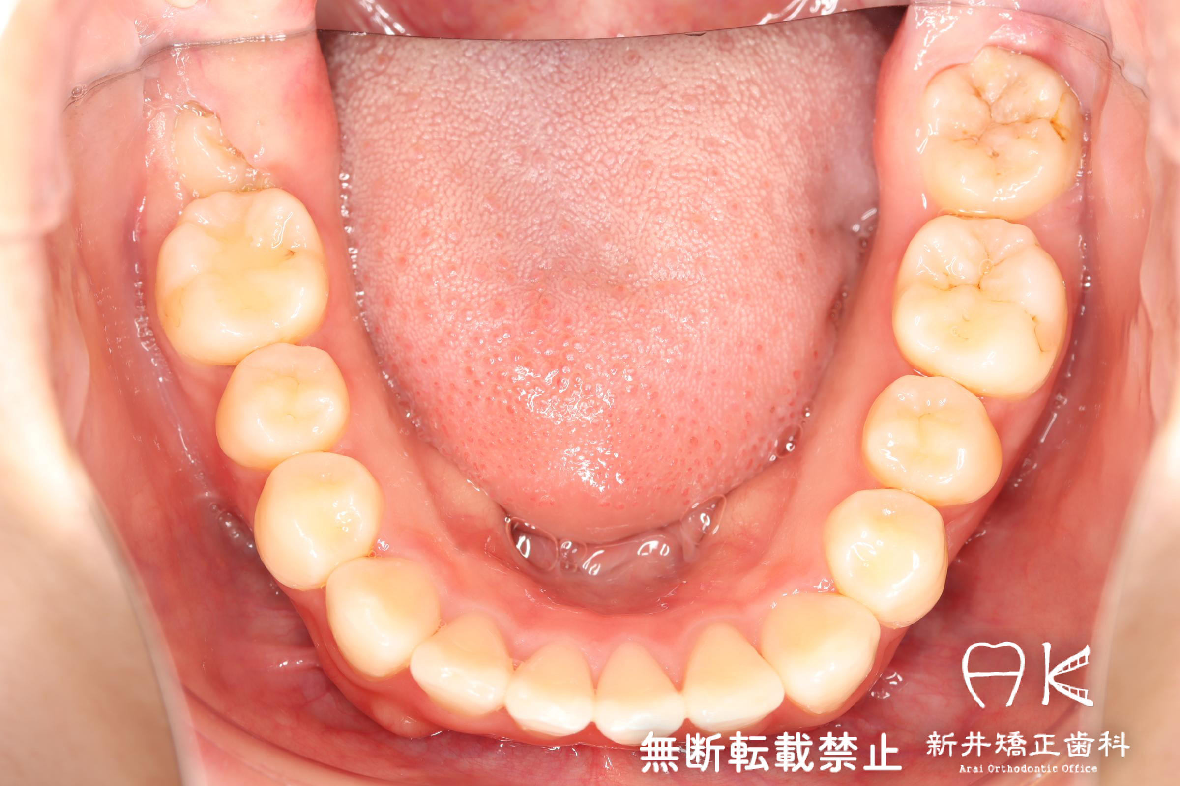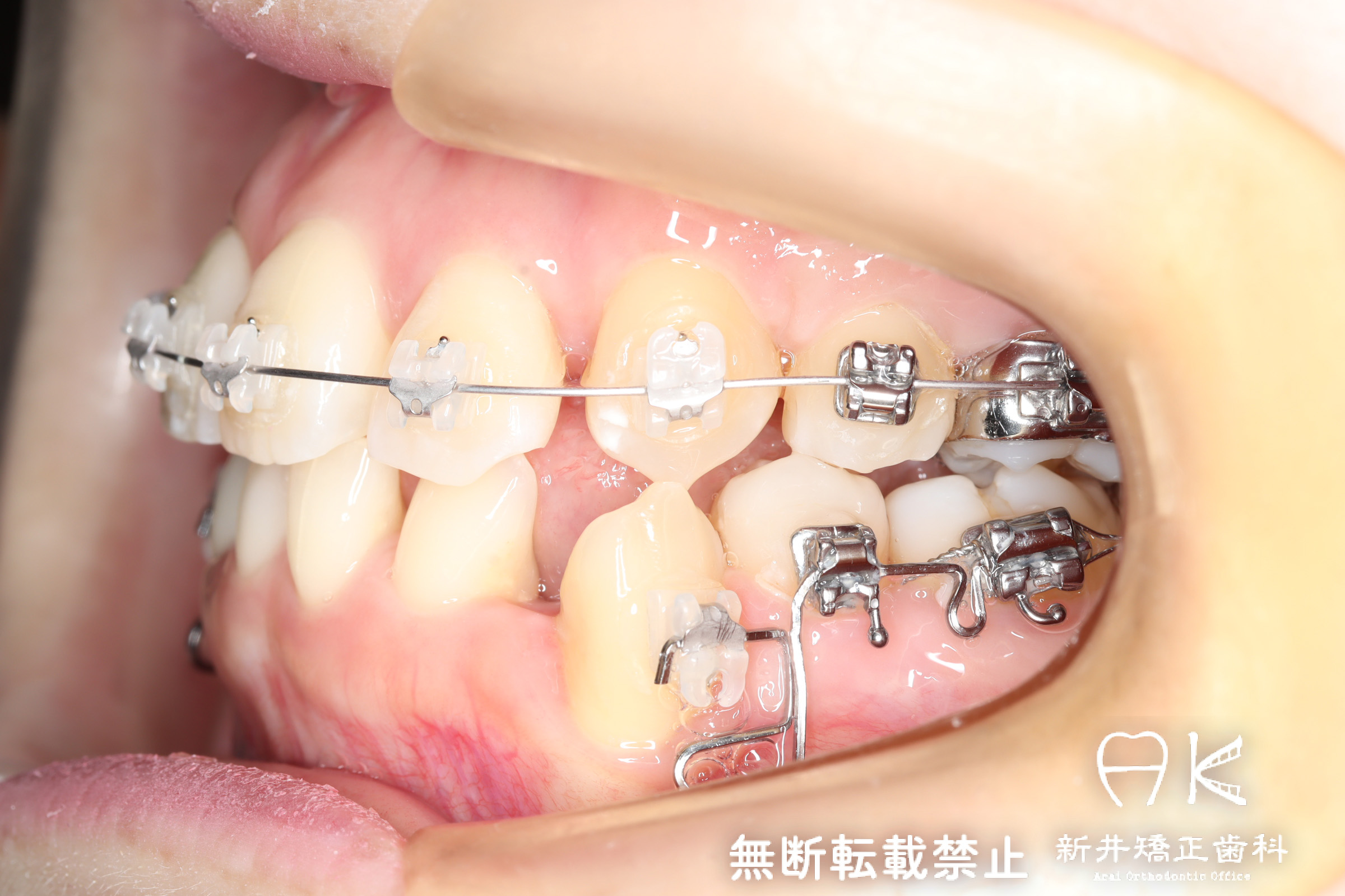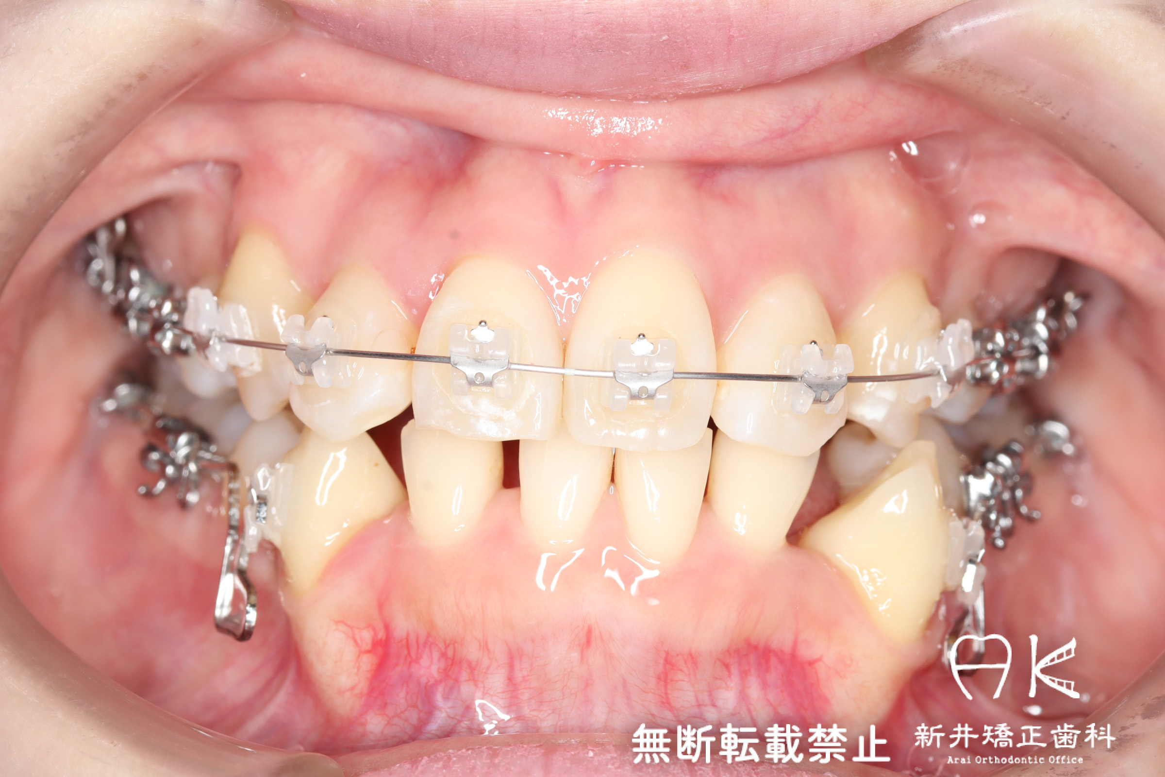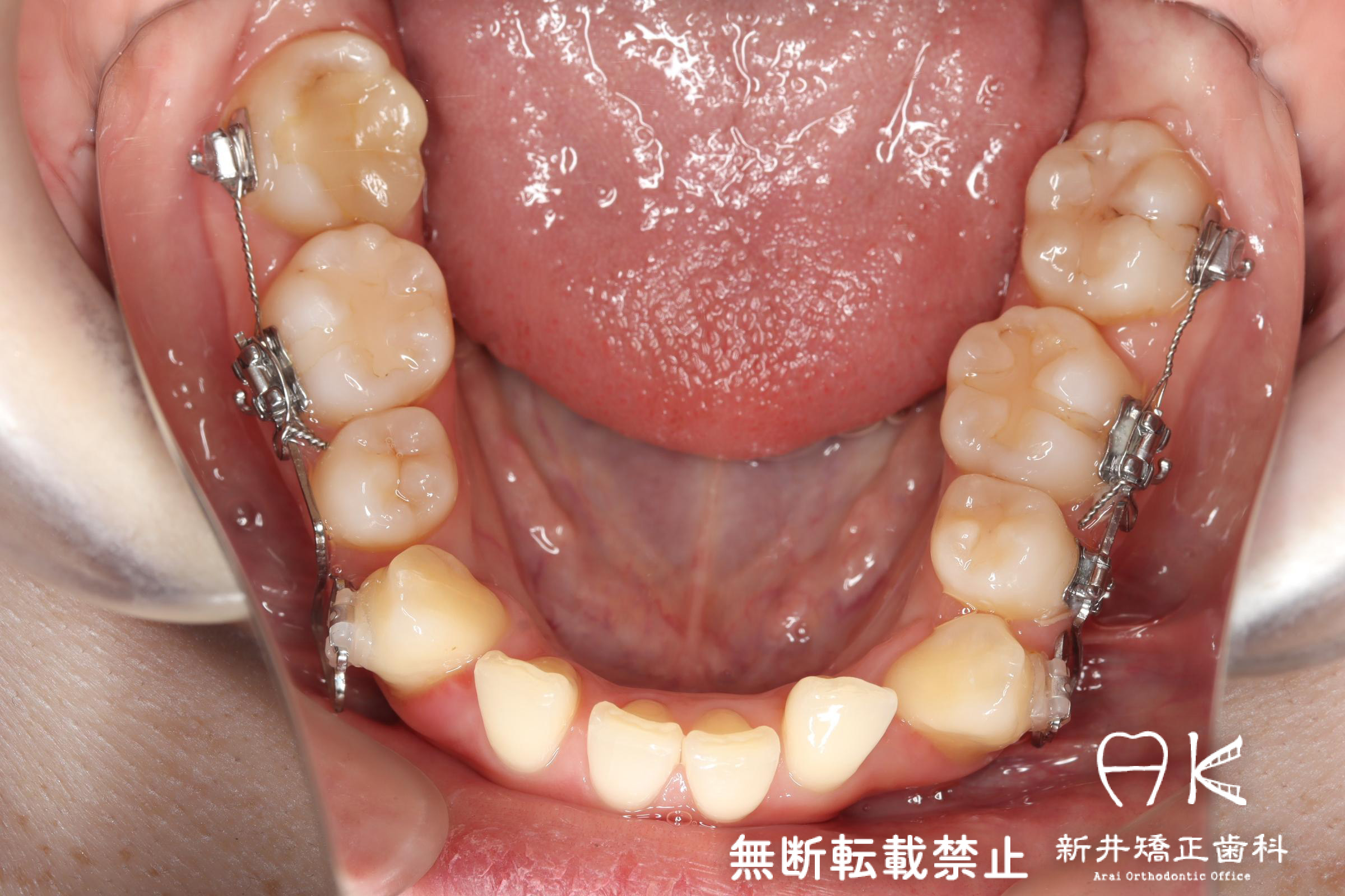 | 使用矯正装置 | 上顎:セルフライゲーションリンガルブラケット 下顎:セルフライゲーションブラケット(セラミッククリッピー) 歯科矯正用アンカースクリュー |