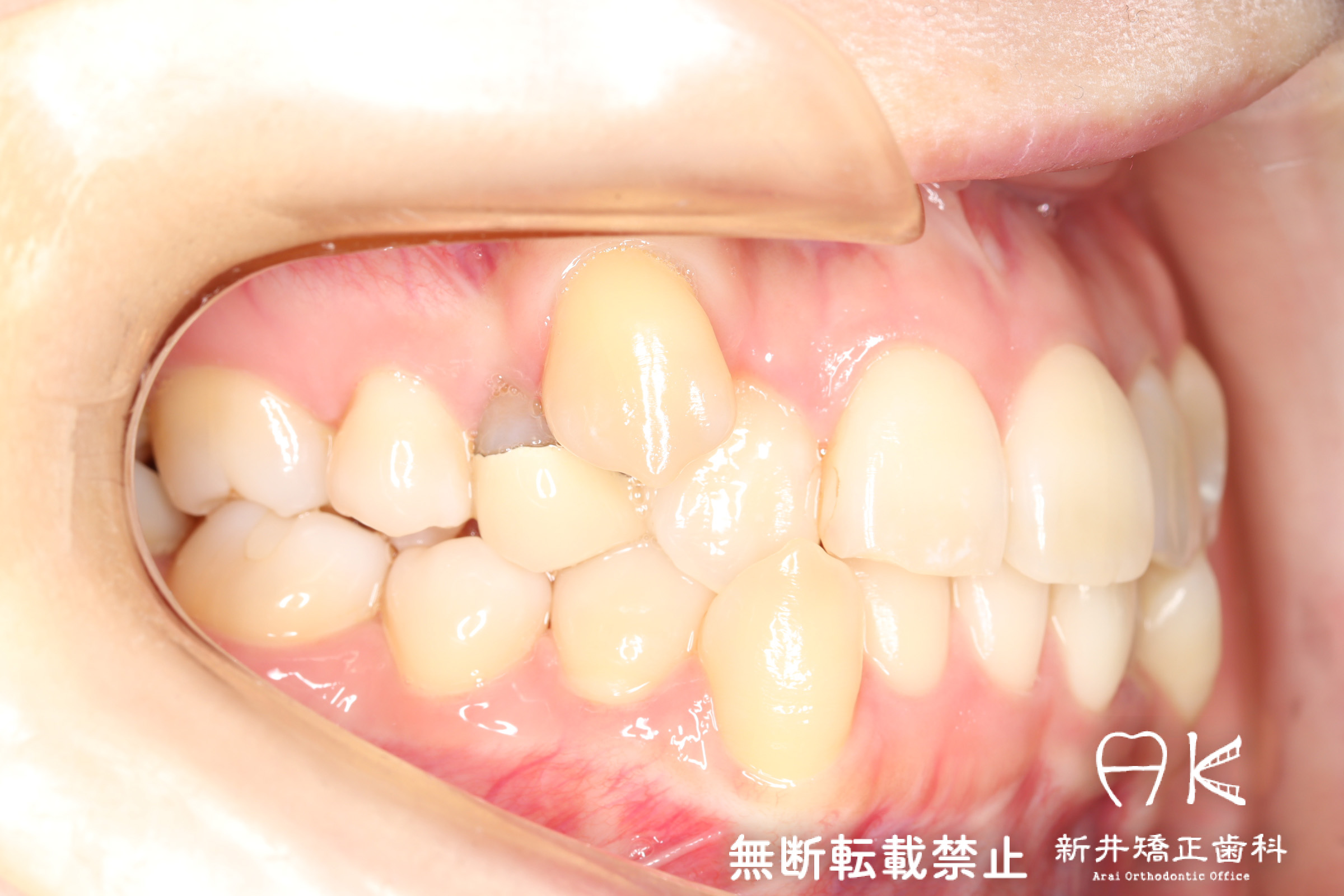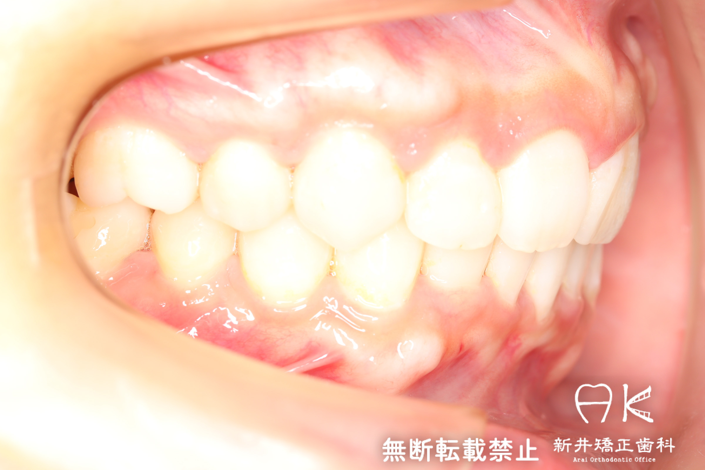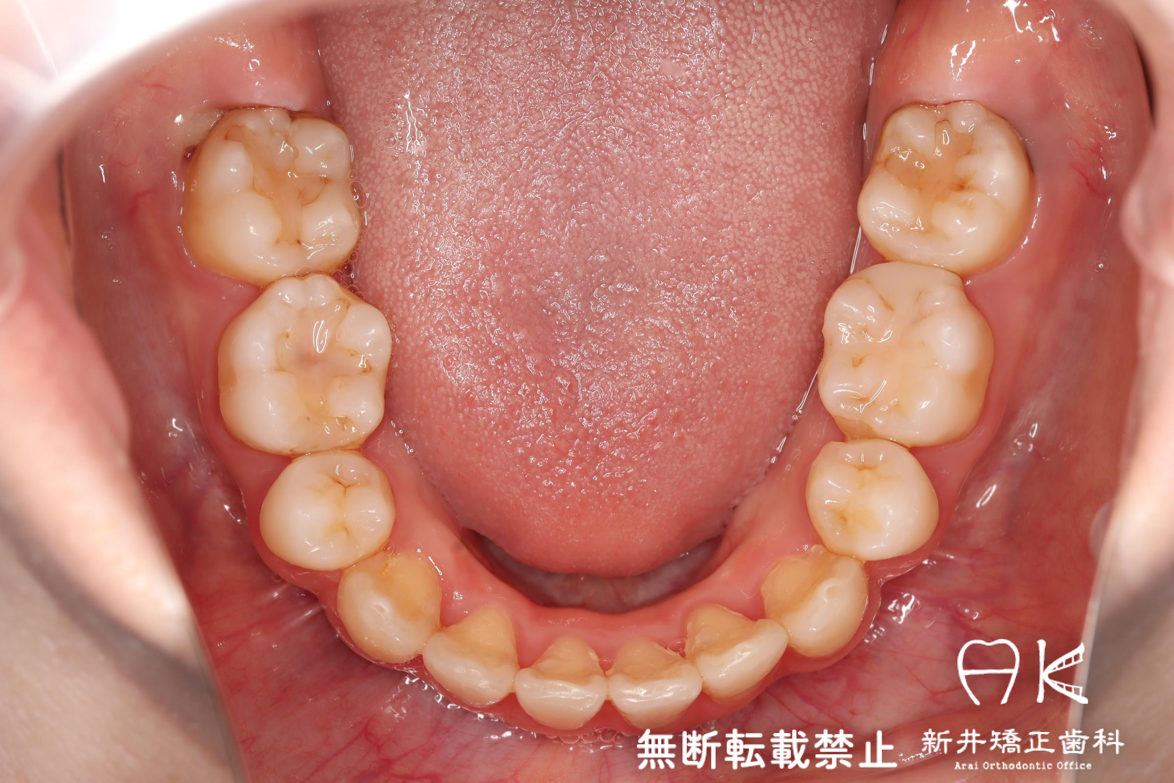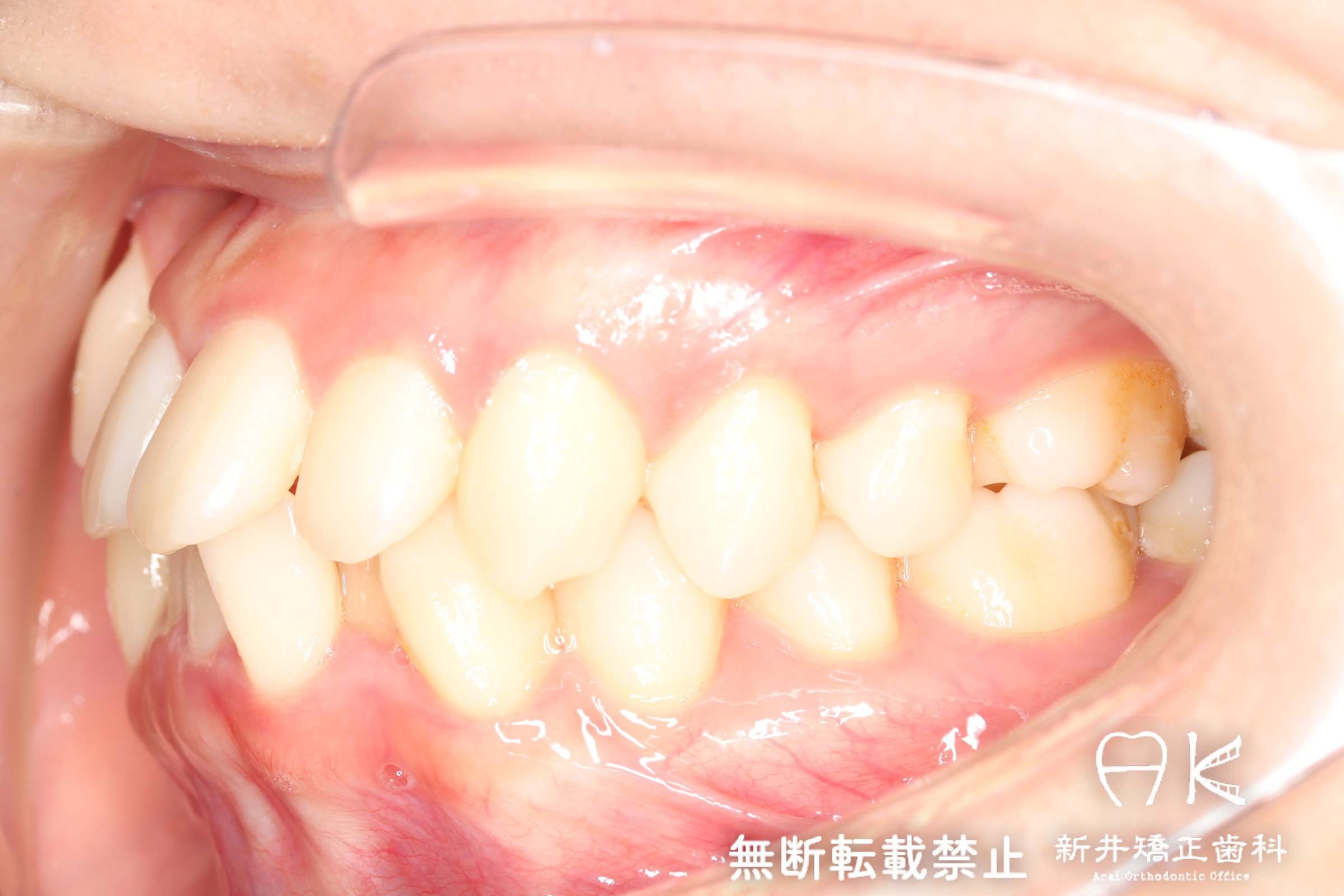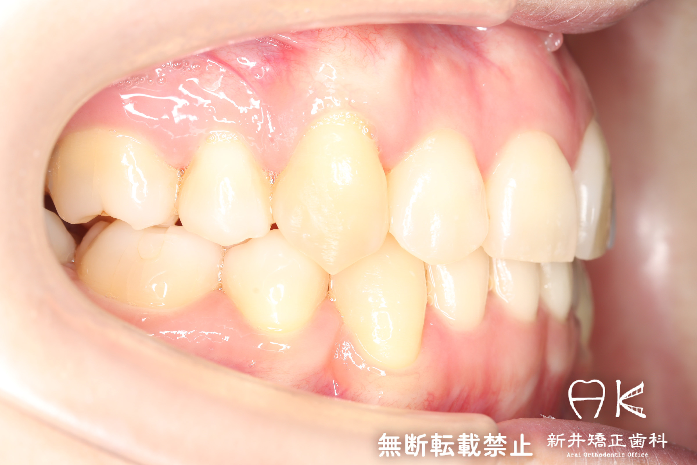 | 使用矯正装置 | 上顎:セルフライゲーションリンガルブラケット 下顎:セルフライゲーションブラケット(セラミッククリッピー) 歯科矯正用アンカースクリュー |