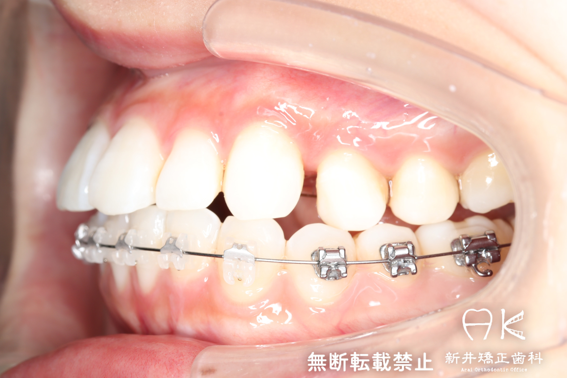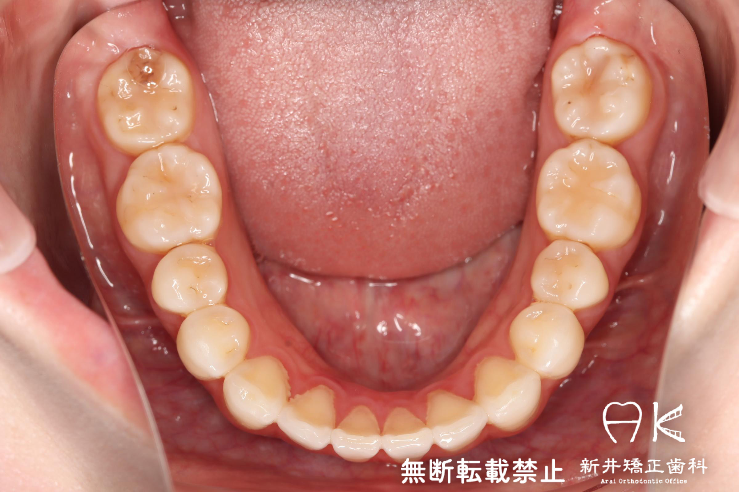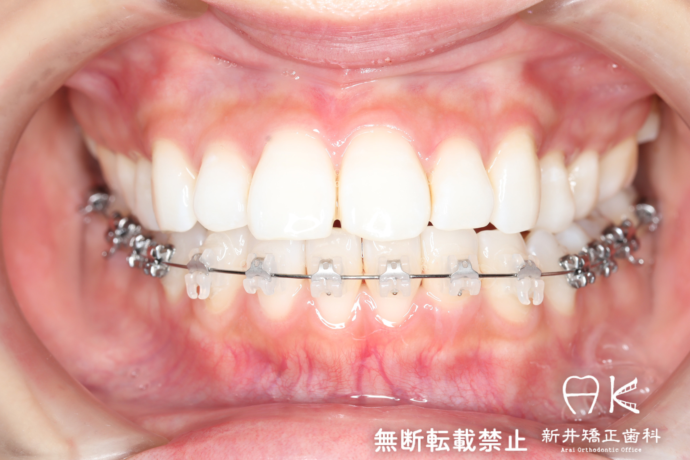 | 使用矯正装置 | 上顎:セルフライゲーションリンガルブラケット 下顎:セルフライゲーションブラケット(セラミッククリッピー) 歯科矯正用アンカースクリュー |